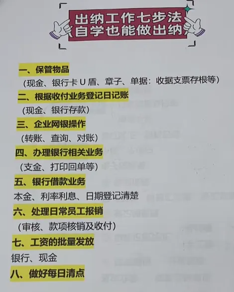 各位好,今天咱们一同学习出纳的工作内容。总的原则:出纳的职责是什么?出纳负责企业资金的收付,实实在在与钱打交道。企业收钱,得经过出纳;往外付钱,同样也要经过出纳。只要涉及资金使用,都是由出纳与相关人员对接。从专业角度来说,出纳付款这一行为,是在背后的会计完成账务的审核、确认与记录之后,才被允许进行的,这是正常流程。在整...