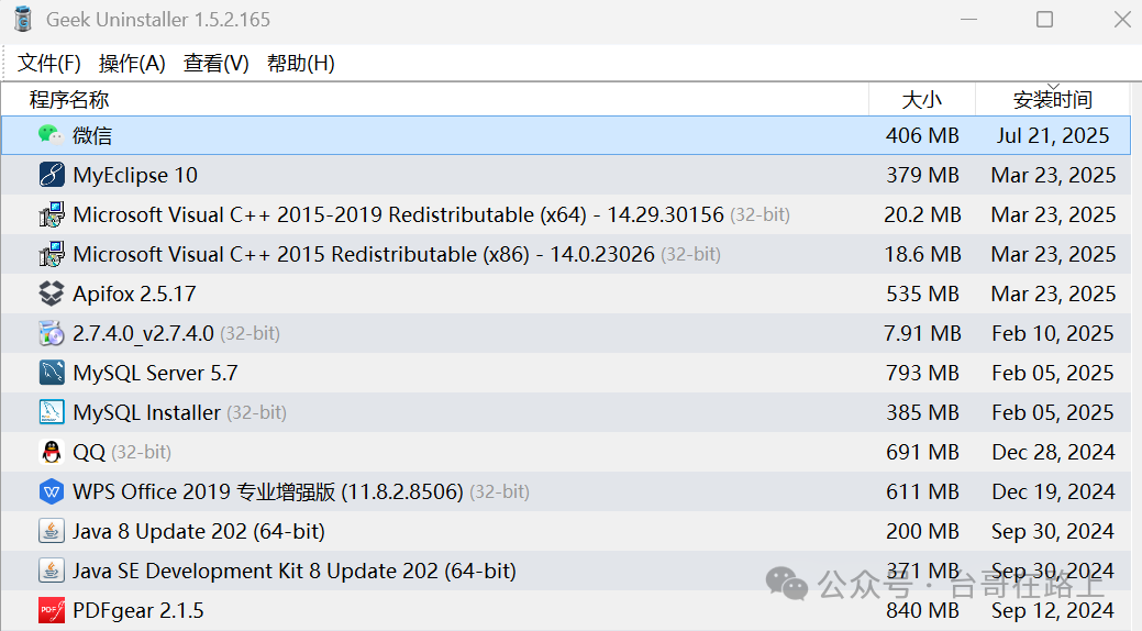 它是一个电脑上的卸载软件,它是用来清理不需要的软件和数据的,所以它自己非常的洁身自好。它的安装包只有3M,解压后也只有6.7M,它的整个程序,只有一个文件。就是下面这个:看起来,它这么简单。但是,它的功能很强大,很好用。来看看它的界面:它会列出当前电脑里的所有软件,只需要右键某个软件,弹出框里选择卸载,就可以对其进行卸...