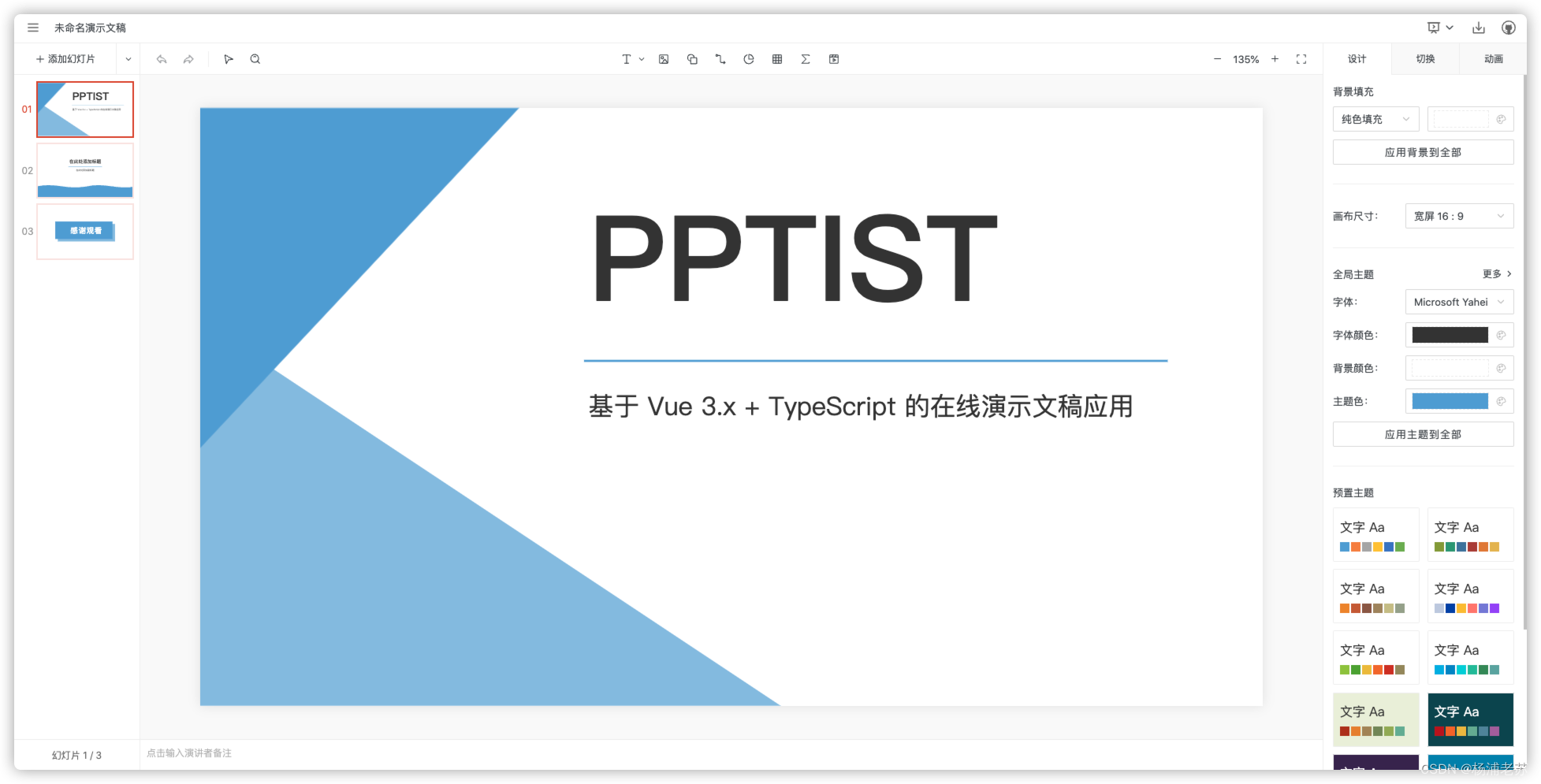 导读本文介绍了PPTist,一个强大的在线演示工具,支持多种元素编辑和导出,以及与PowerPoint相似的功能。文章还详细说明了如何使用Docker构建和部署PPTist应用,以及其安装和运行方法。PPTist是一个基于Vue3.x+TypeScript的在线演示文稿(幻灯片)应用,还原了大部分OfficePower...