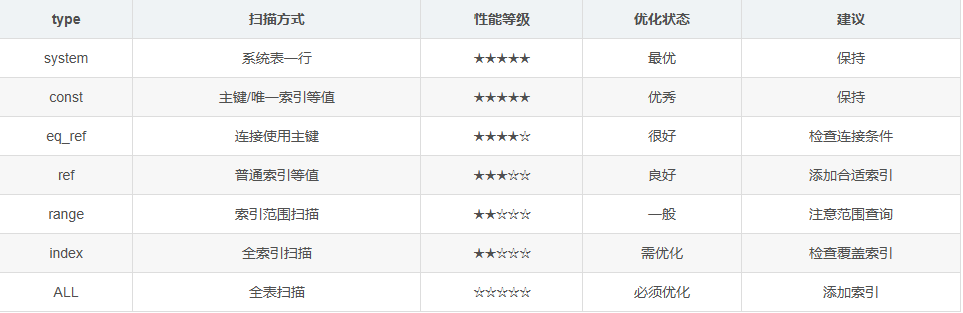 深入理解MySQLEXPLAIN的七种type类型 掌握MySQL的EXPLAIN命令是数据库性能优化的必备技能,而其中的type字段更是分析查询性能的关键指标。本文将带你深入理解七种type类型的含义、使用场景和优化策略。 一、什么是EXPLAIN的type字段?在MySQL中,EXPLAIN命令用于分析SQL查...