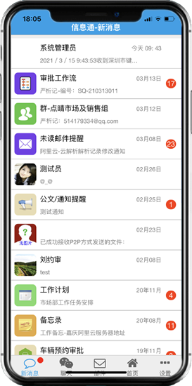 为了方便快速地让项目按时进行,点晴OA系统通过工作流在线上进行各个流程的审批操作,员工不再为了及时得到领导的审批而拿着文件到处找各个领导签字,只需要在系统中发个工作流并且将相关人员设置成审批人后发送,相关人员就会及时收到审批通知,可以在电脑或者手机上及时进行审批工作,高效又实时。