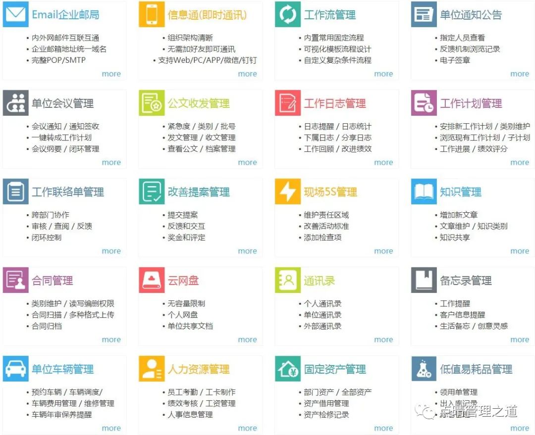 点晴OA系统功能模块包括Email、工作流、人力资源管理、财务管理、客户管理、车辆管理、工作计划管理、公文收发管理、网盘、知识管理、通知公告、通讯录、工作日志、工作报告、单位会议……