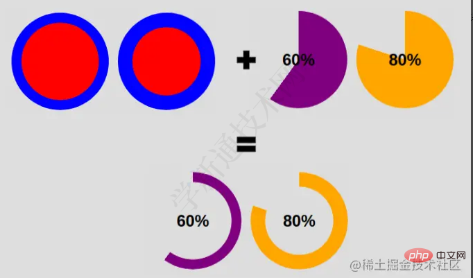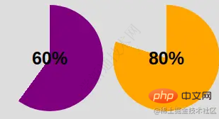 完整的代码请滑到文末。 我们只使用一个div,仅采用css实现饼状图。 HTMl 结构 <div style="--p:60;--b:10px;--c:purple;">60%</div> 我们添加了几个 css 的变量: