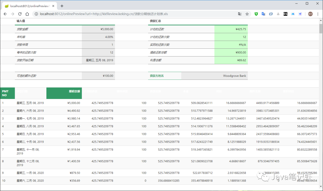 支持xls,xlsx文档预览,预览效果如下