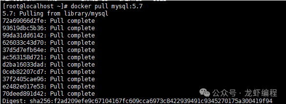 至此docker就已经安装成功了。 2.2 实操docker安装Mysql (1)拉取镜像