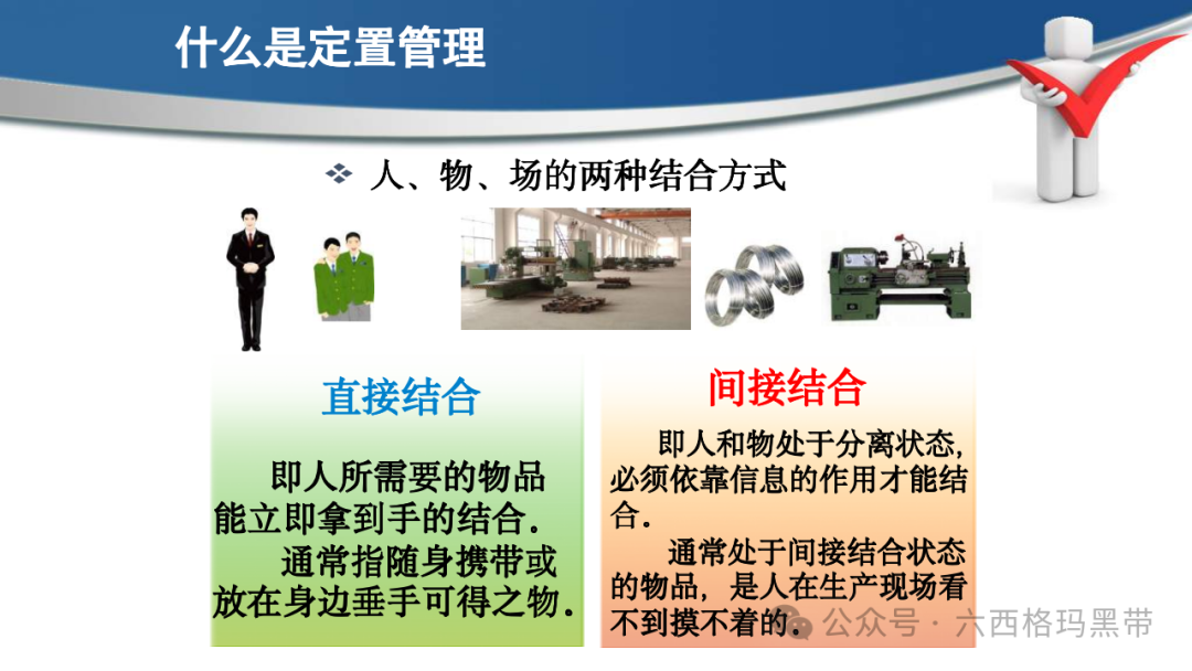 人、物、场所的结合状态决定了生产过程的效率和质量。根据三者的结合程度,可以分为以下三类: