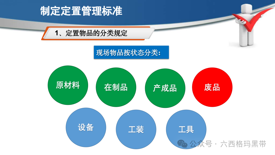 • 决定定置的物品和场所:明确需要定置的物品和区域,根据物品的性质和用途进行分类存放。