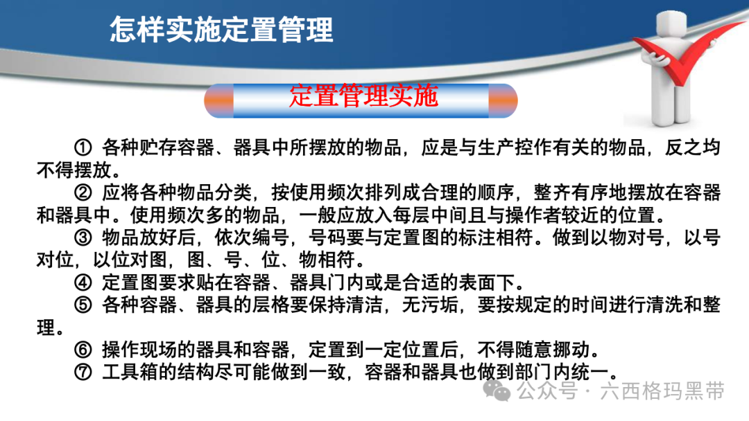 • 对物品进行定置:根据定置图将物品放置到指定位置。在放置过程中,应严格按照定置图的要求进行操作,确保物品放置的位置准确无误。