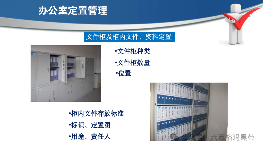 • 文件柜及柜内文件、资料定置:规范文件柜的摆放和柜内文件的存放,确保文件的查找和使用方便快捷。