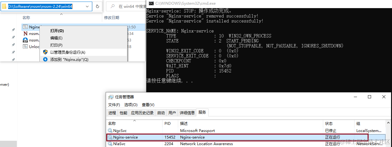 使用 nssm 创建 nginx 服务 每次改完配置还要敲命令重启,开机还要启动,那很明显是不太方便的,所以部署 nginx 服务就很有必要了