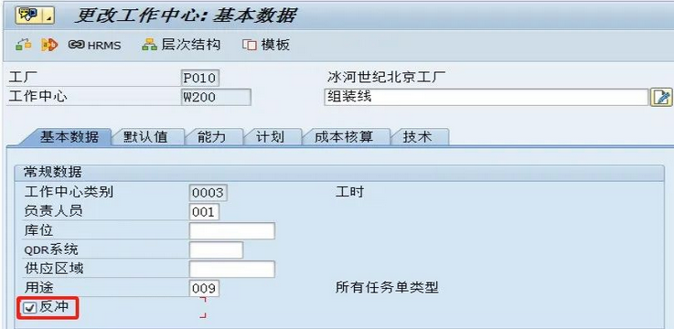 工作中心有个反冲标识如下图,这个设置需要结合物料主数据中的反冲标识一起使用。