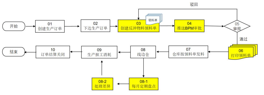 上图反冲发料业务流程说明