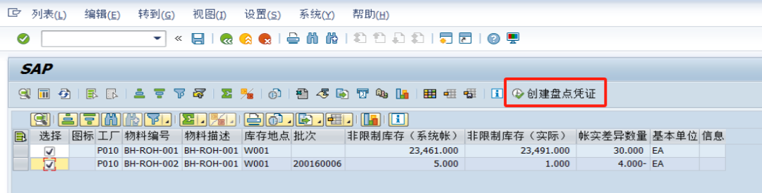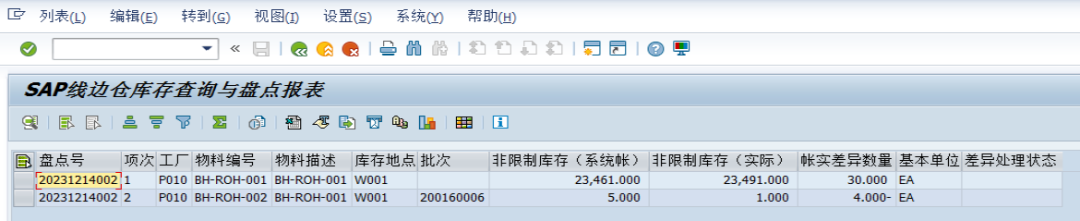 因线边仓的反冲物料的消耗是按工单里面维护的定额用量进行消耗的,并不是每个工单的实际消耗量,所以线边仓的反冲物料的系统库存和实际库存肯定是存在差异的,而这些差异需要定期进行处理,一般情况下至少一个月盘点一次。