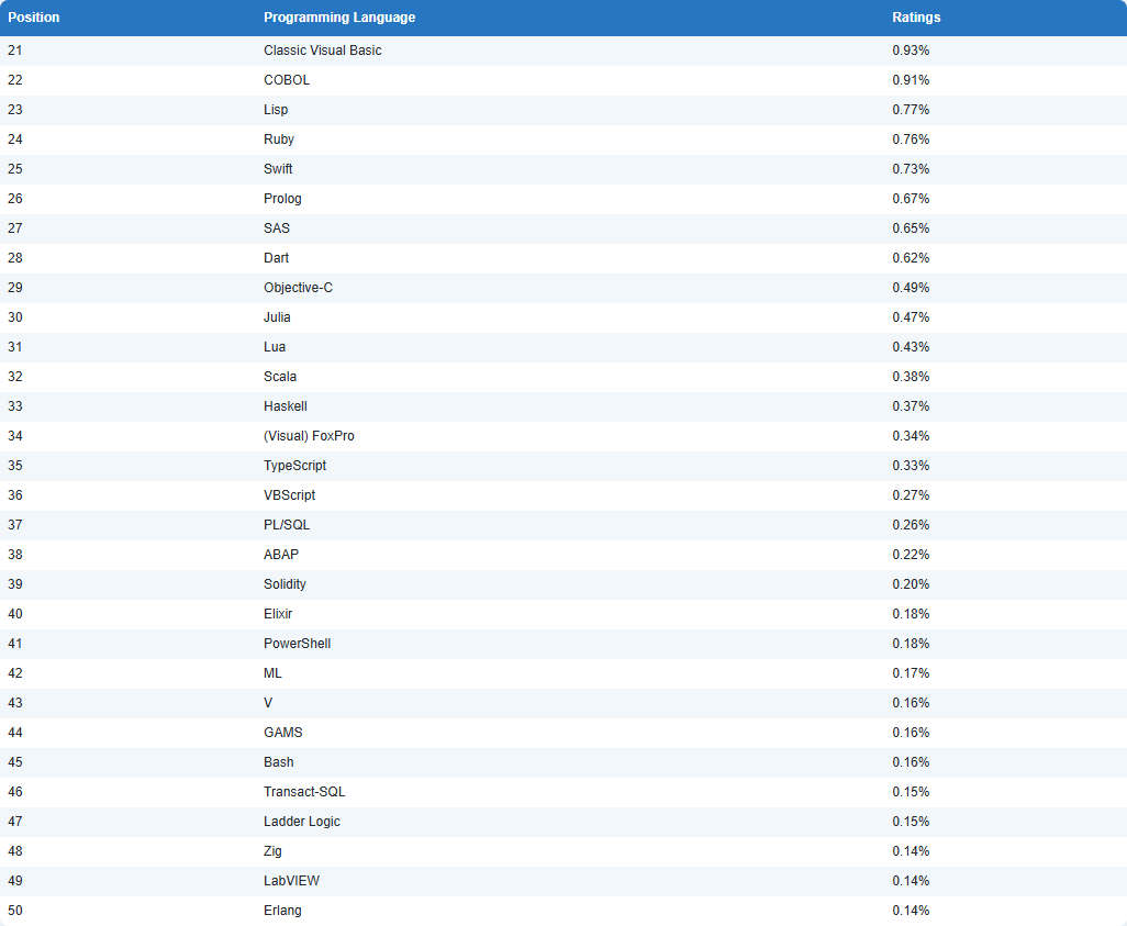 TIOBE 编程语言排行榜是全球最具权威性的编程语言流行度榜单之一,每月更新一次。它通过分析全球范围内搜索引擎(如 Google、百度、必应等)中编程语言相关关键词的搜索热度,来评估各编程语言的受欢迎程度。