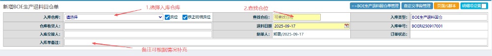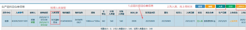 点晴模切ERP-BOE生产退料回仓单流程