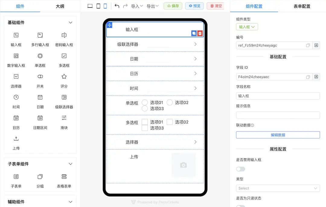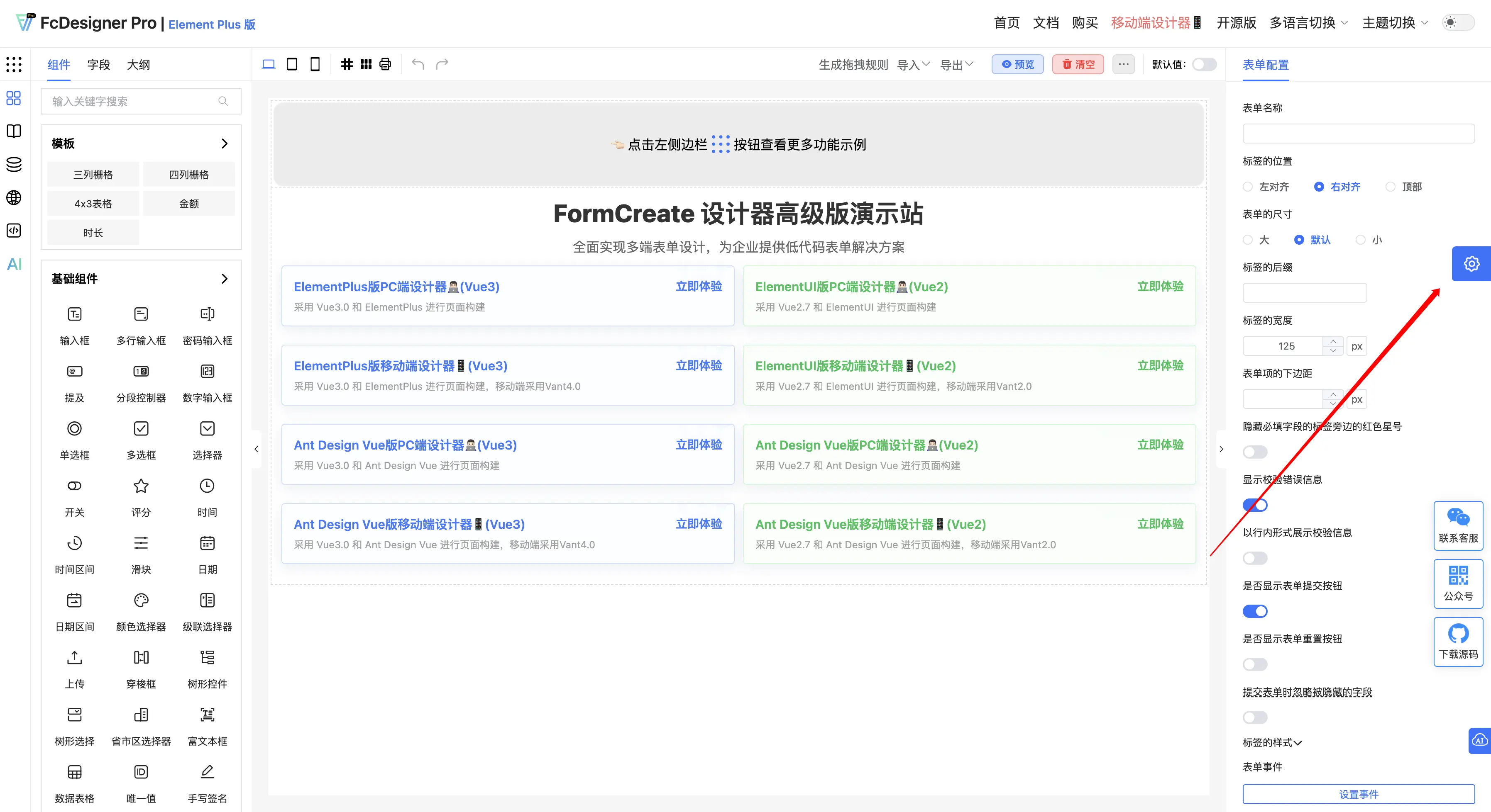 Vue 开源项目低代码表单设计器FcDesigner,兼容Element Plus/Ant Design/Vant,支持PC/移动端