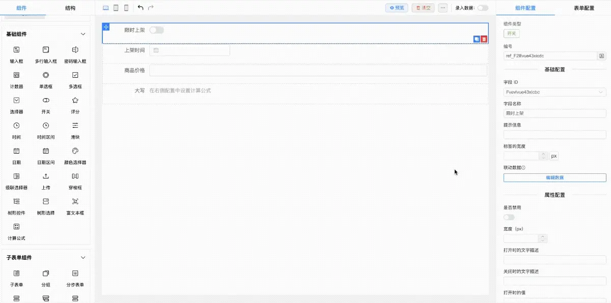 您可以根据业务需求随心定制设计器界面和功能组合啦,系统会自动生成对应的配置参数,简直不要太方便!